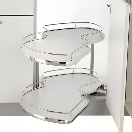 The magic corner system transforms unused corner cabinets into efficient storage spaces. With a smooth pull-out mechanism, it allows easy access to cookware, containers, and other kitchen items that are usually hard to reach.